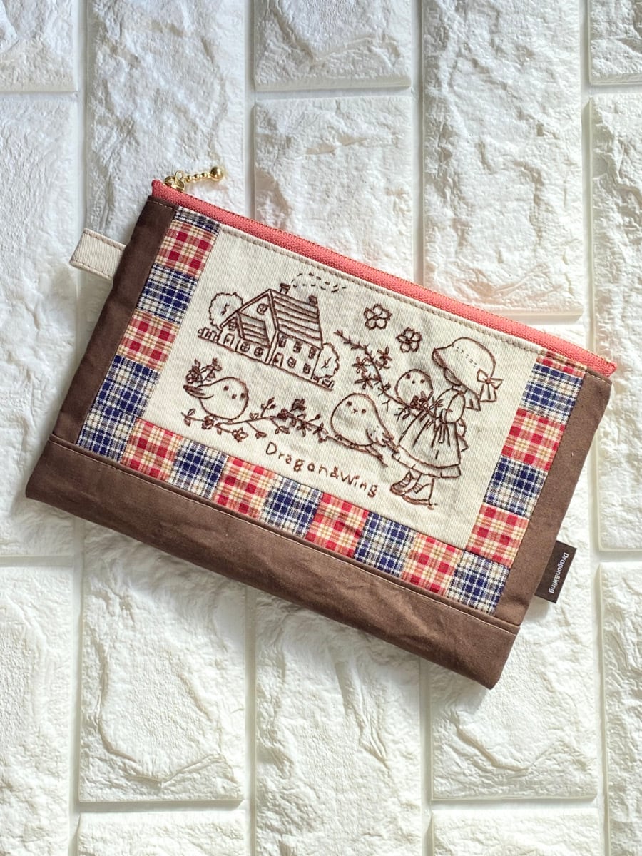 「シマエナガのいる風景」刺繍×パッチワークフレームポーチ