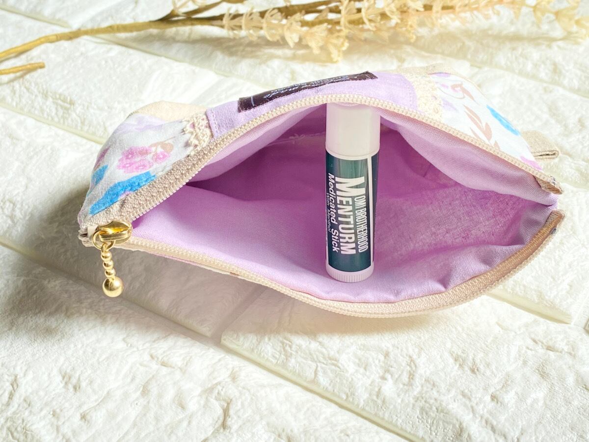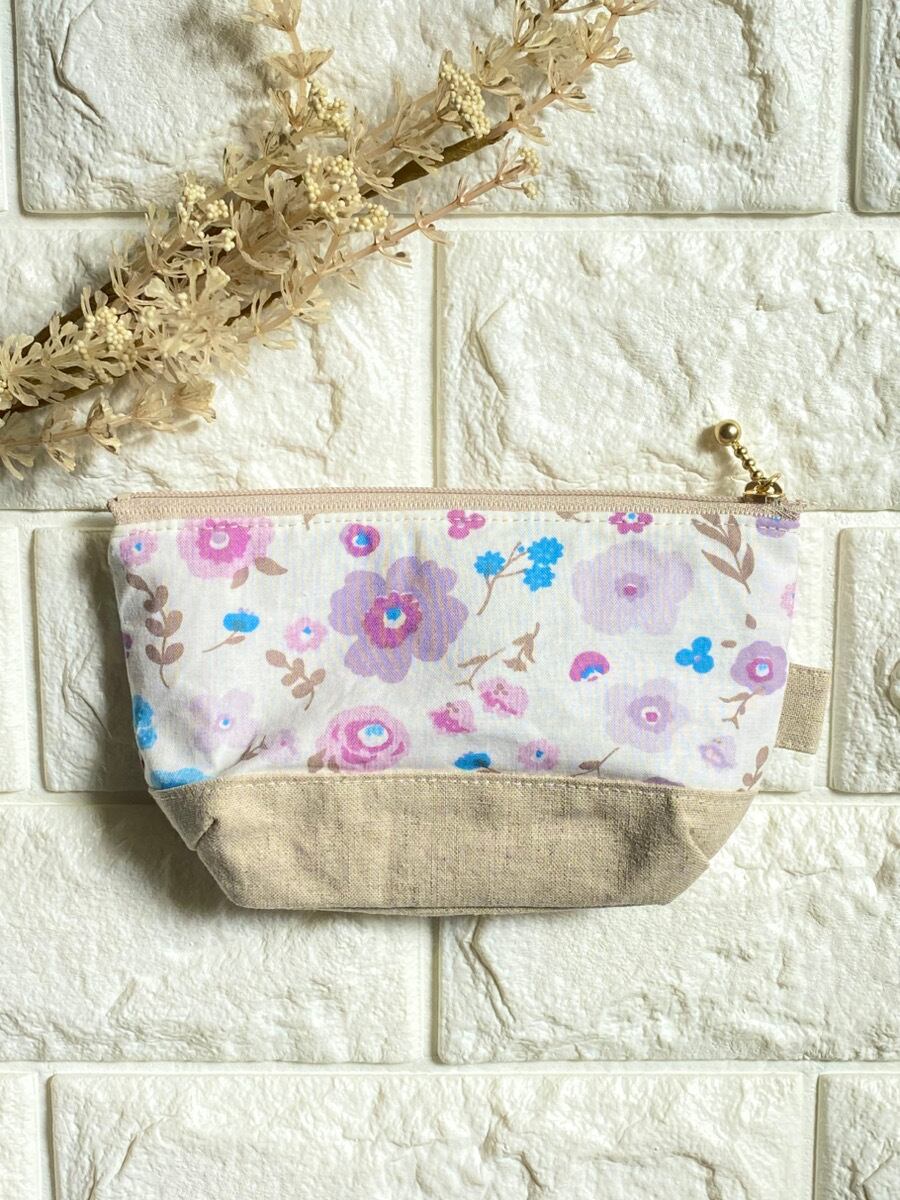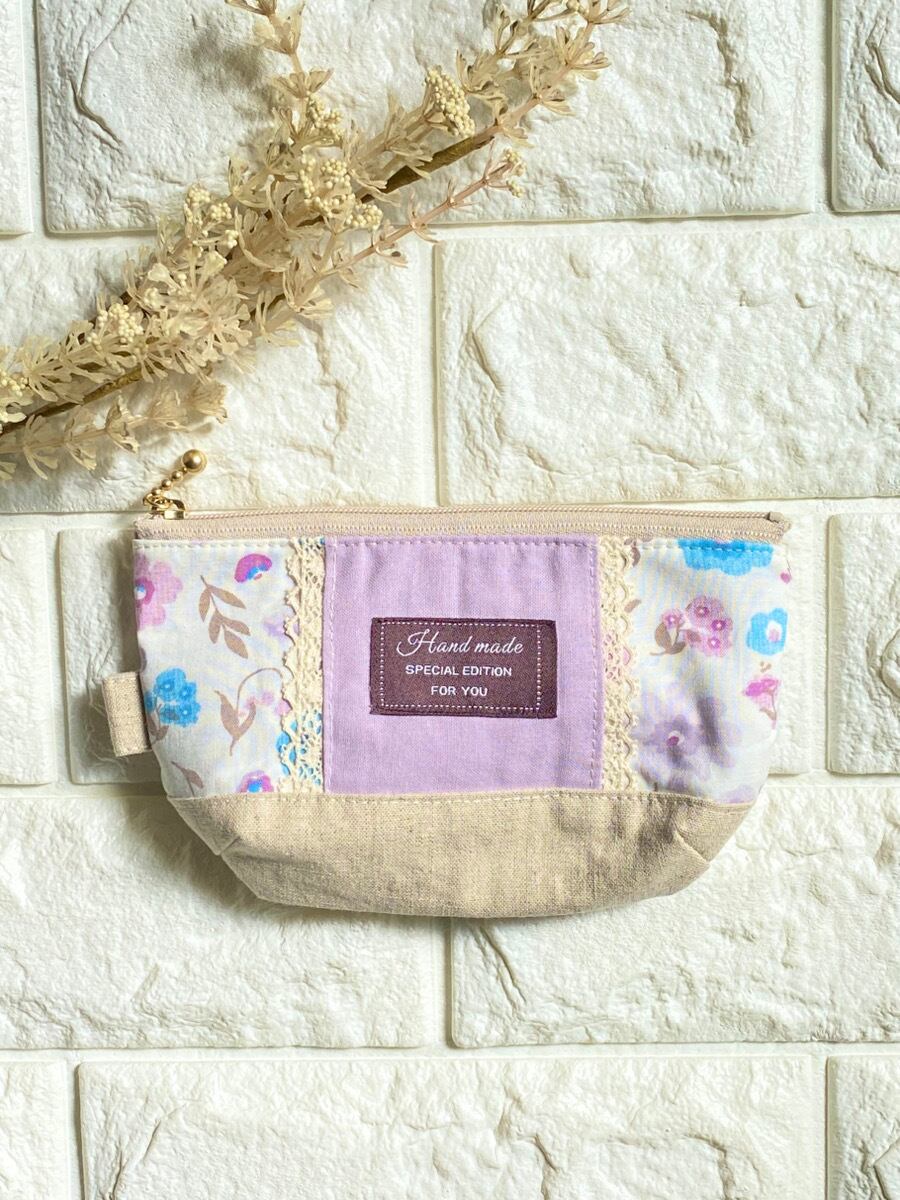 花柄パッチワークポーチ|コスメポーチ・小物入れ・メイクポーチ|ハンドメイド ライトパープル