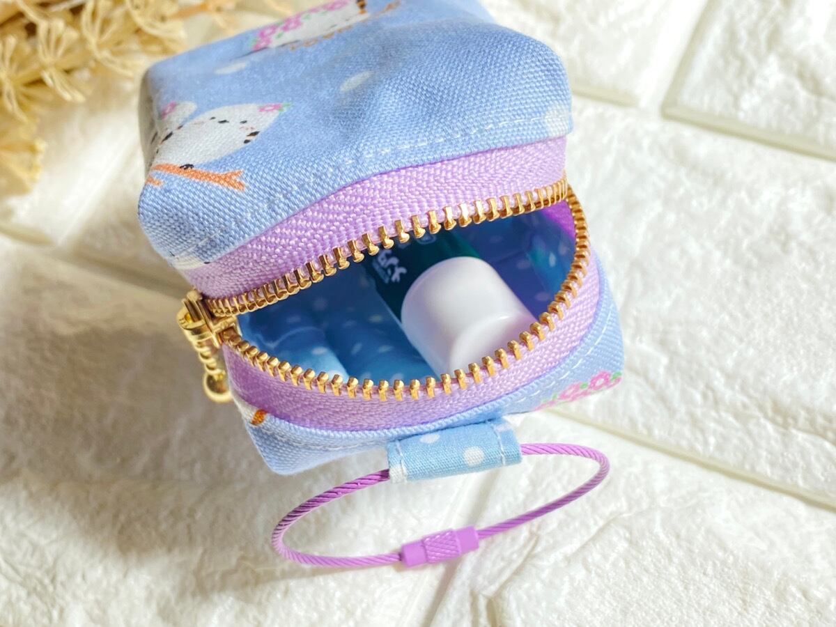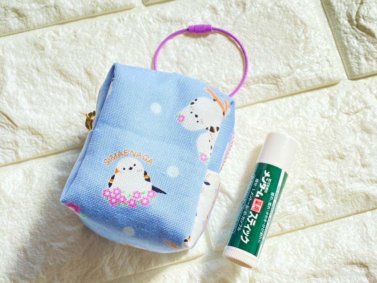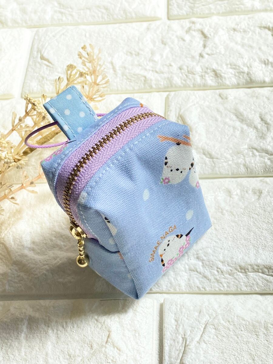 ころんとした小さなサイズが可愛い、カラビナ付きミニポーチです。シマエナガのやさしいイラストが描かれたくすみブルーのコットン生地を使用し、バッグやリュックに取り付けて持ち歩ける便利なデザインに仕上げました。コンパクトながらマチ付きなので、小さなアイテムをしっかり収納できます。リップクリームや目薬、イヤホン、鍵、小銭など、すぐ取り出したい小物をまとめて持ち歩くのにぴったりです。カラビナ付きなのでバッグの持ち手やリュックに簡単に取り付けられ、迷子になりやすい小物の収納にも便利です。かわいらしいシマエナガ柄は、シマエナガ好きの方へのプレゼントにもおすすめです。