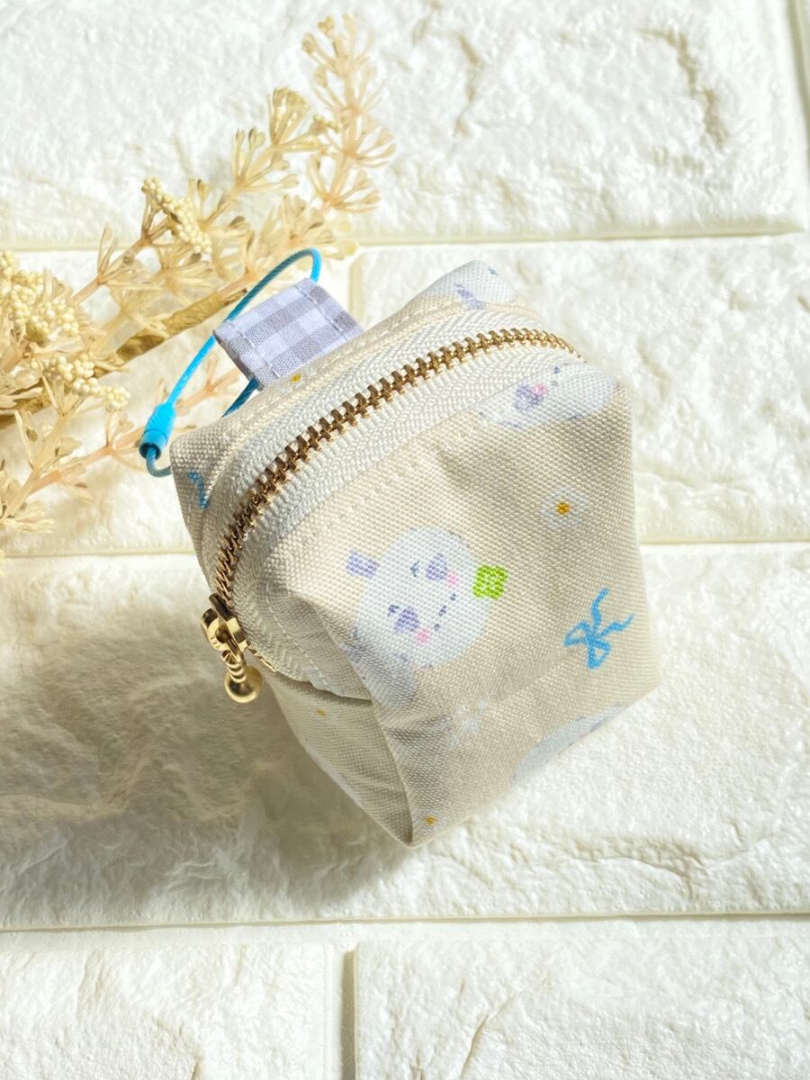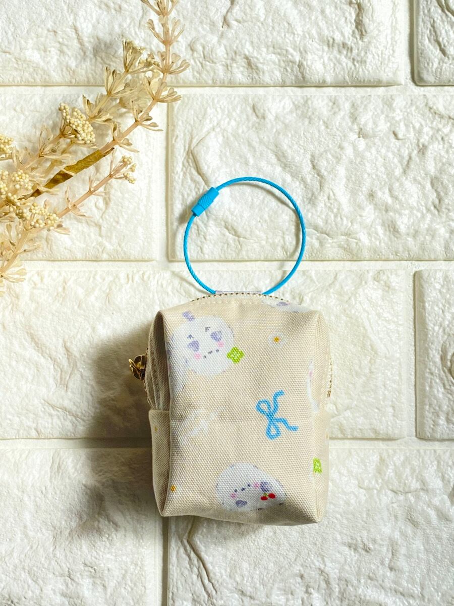 カラビナ付きシマエナガミニポーチ|リップケース・イヤホンケース・小銭入れ|クリーム色